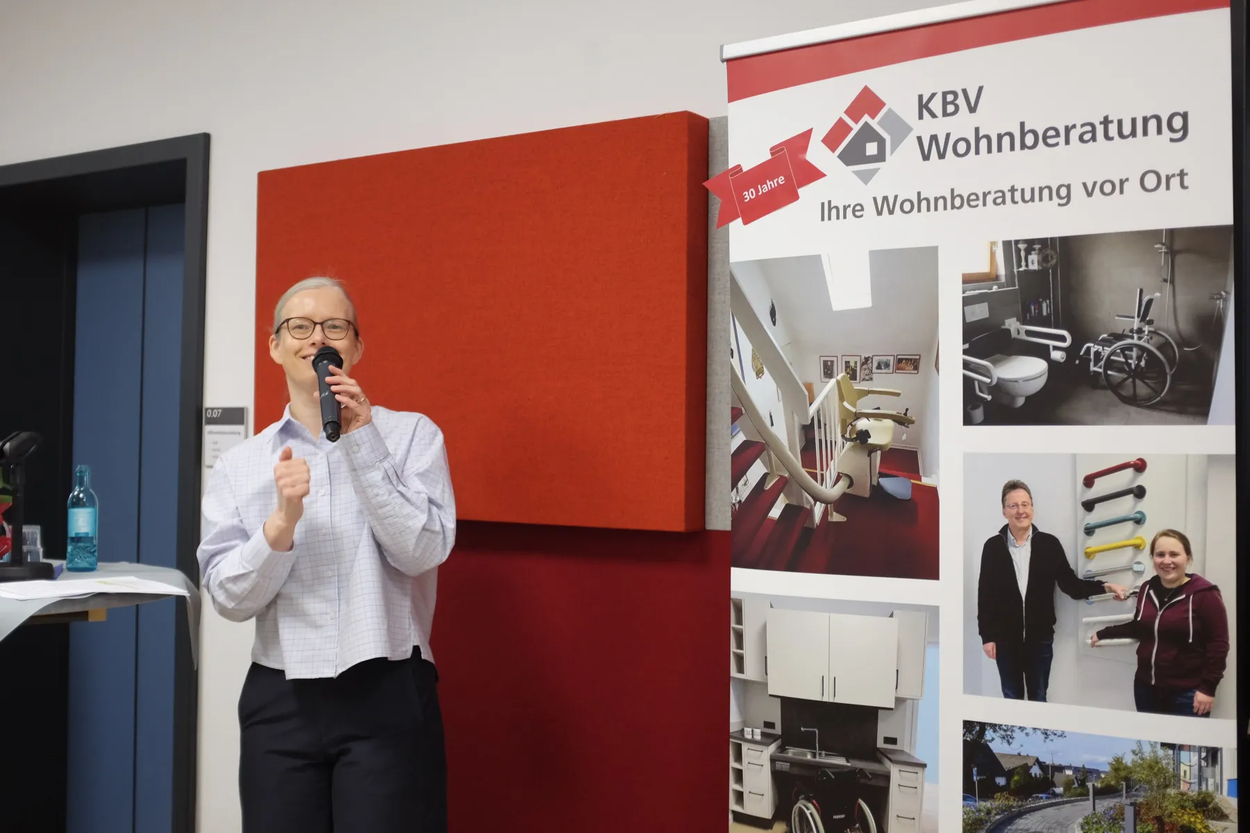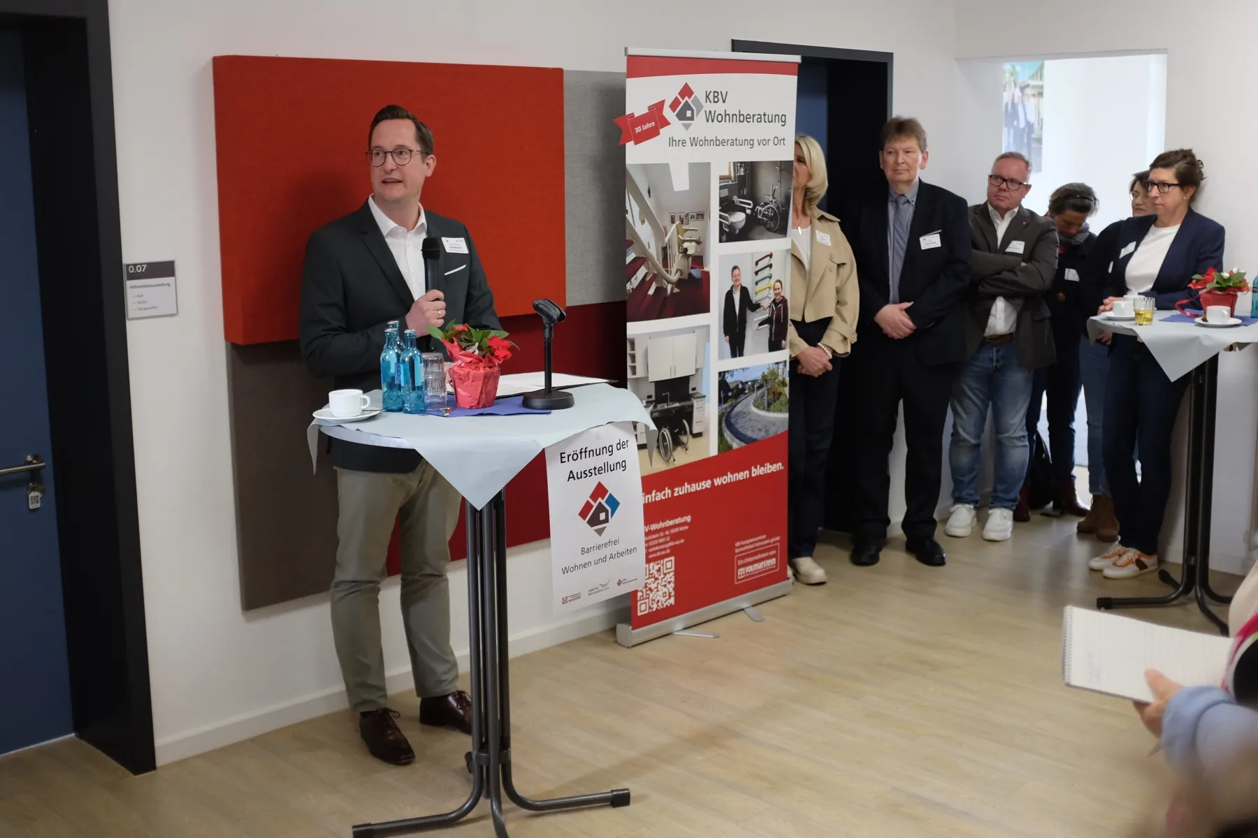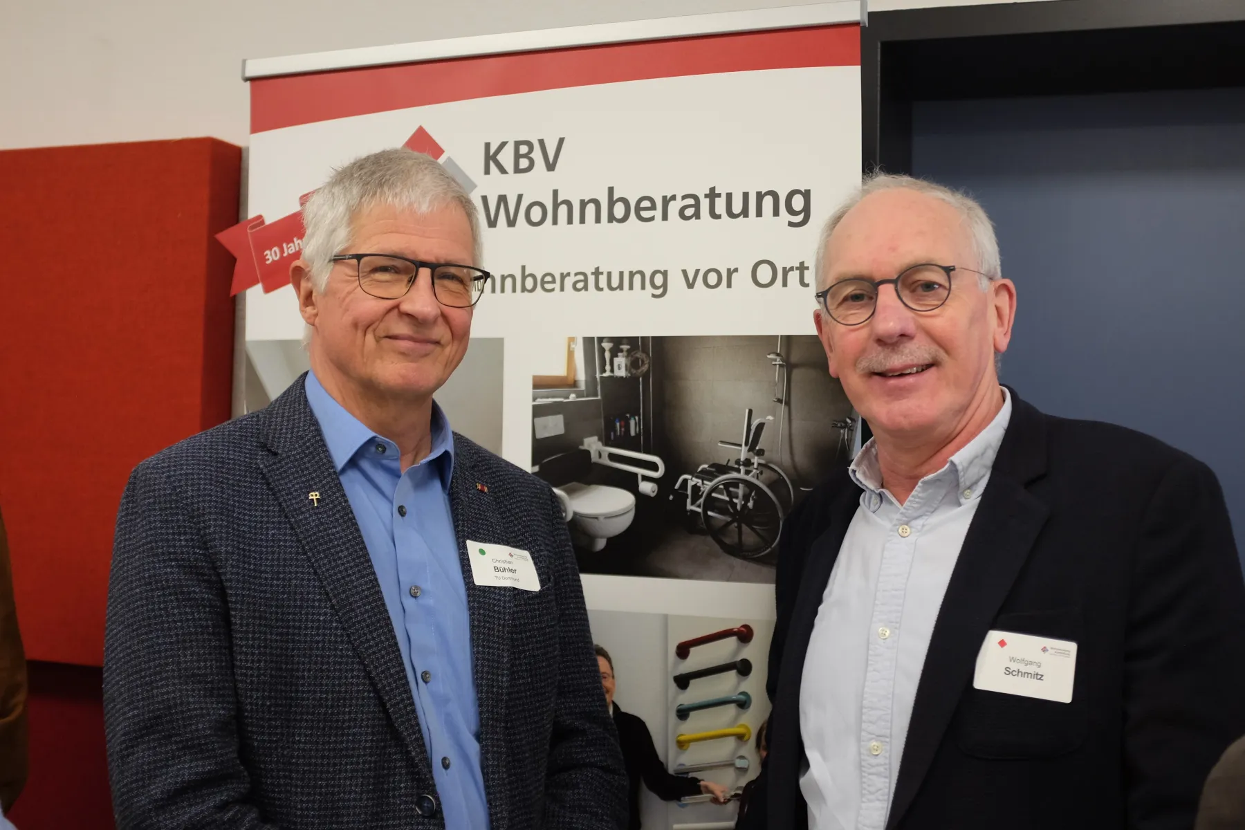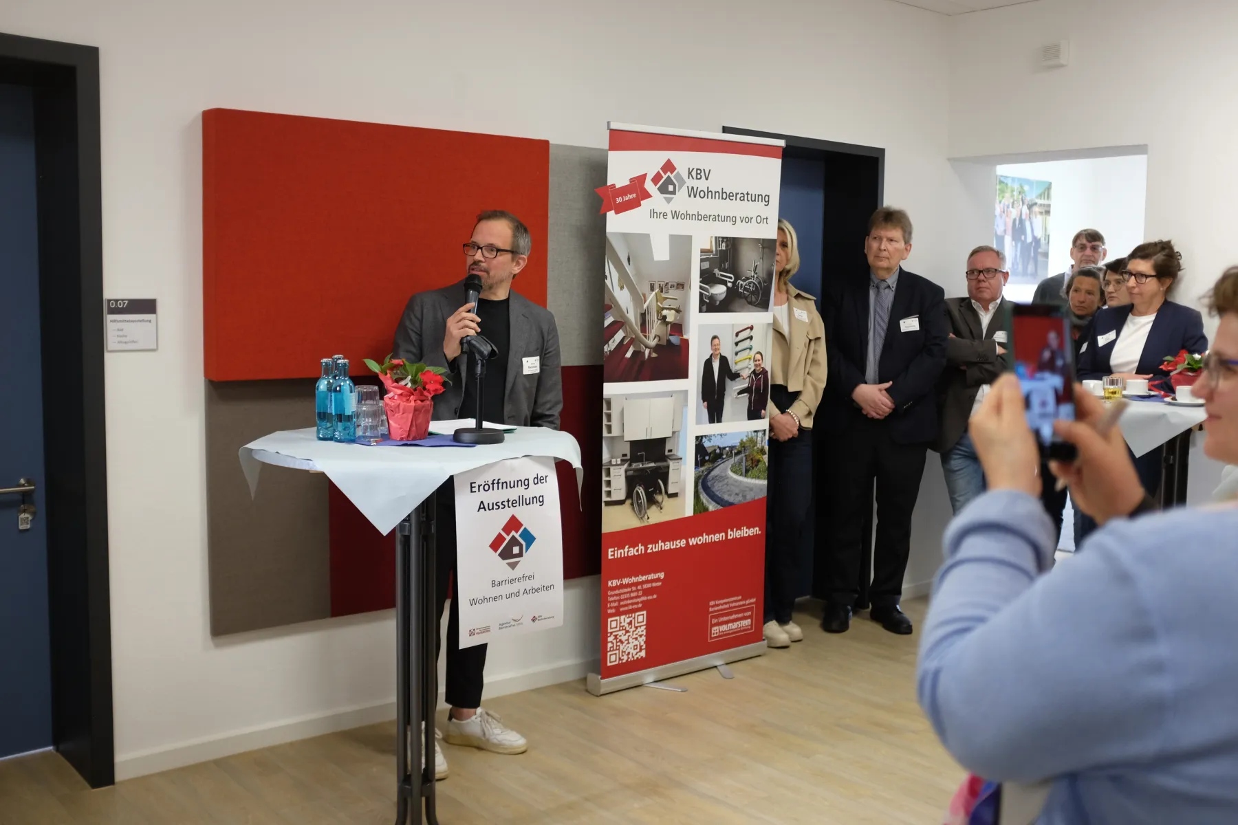 Zusätzlich zur Ausstellungseröffnung wurde auch ein besonderes Jubiläum gefeiert. Seit über 30 Jahren unterstützt die KBV-Wohnberatung Menschen im Ennepe-Ruhr-Kreis dabei, die eigene Wohnung bedarfsgerecht anzupassen. Da dieses Jubiläum im Umbaujahr 2025 nicht begangen werden konnte, wurde es nun nachgeholt. „Sie motivieren Menschen, dazuzulernen und zeigen ihnen Wege in eine barrierefreie Zukunft“, mit diesen Worten würdigte Landrat Jan-Christoph Schaberick die Arbeit des Kompetenzzentrums Barrierefreiheit Volmarstein der Evangelischen Stiftung Volmarstein.