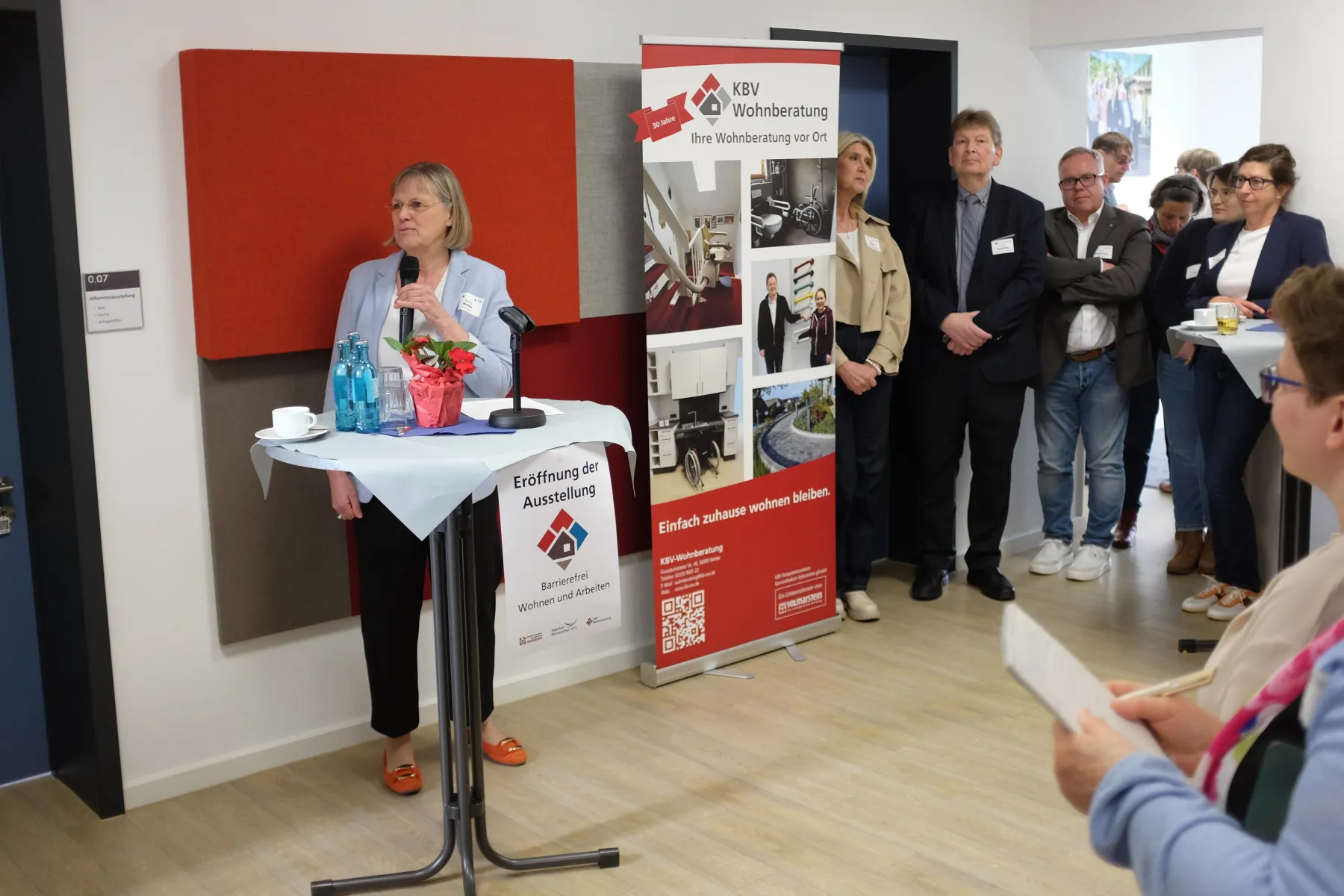 Die Wohnberatung des Kompetenzzentrums Barrierefreiheit Volmarstein (KBV) hat gemeinsam mit der Agentur Barrierefrei NRW die neue Ausstellung „Barrierefrei Wohnen und Arbeiten“ eröffnet. Anschließend wurde die neue Ausstellung der breiten Öffentlichkeit während eines „Tag der offenen Tür“ vorgestellt.